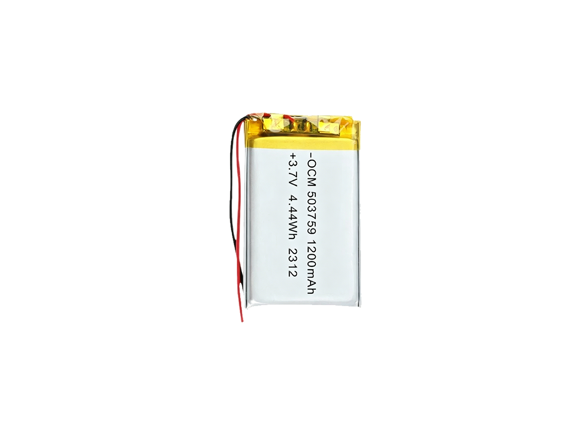 Polymer lithium battery OCM5019105 1200mAh Specification: Model OCM5019105 Rated Voltage 3.7V Charging Voltage (Max) 4.2V Discharge Cut-off Voltage 2.75V Rated Capacity 1200mAh Max Charging Current 0.5C Max Continuous Discharge Current 0.5C Internal Resistance ≤100mΩ Cycle Life ≥400 cycles (80% capacity retention) Dimensions (T×W×L) 5.0 × 19 × 105 mm Operating Temperature (Charge) 0°C ~…