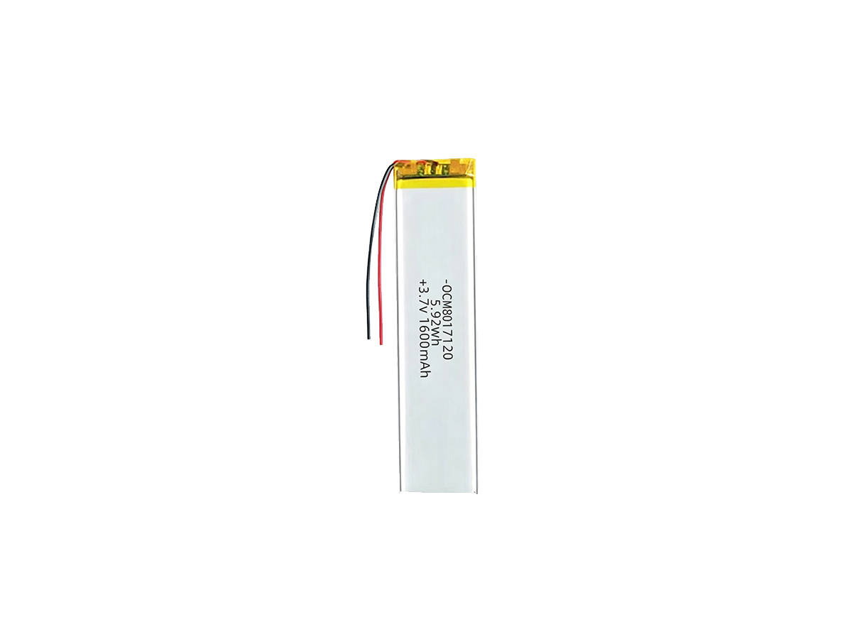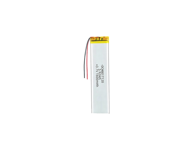 Polymer lithium battery OCM651472 600mAh   Specification: Model OCM651472 Rated Voltage 3.7V Charging Voltage (Max) 4.2V Discharge Cut-off Voltage 2.75V Rated Capacity 600mAh Max Charging Current 1C Max Continuous Discharge Current 1C Internal Resistance ≤100mΩ Cycle Life ≥300 cycles (80% capacity retention) Dimensions (T×W×L) 6.5 × 14 × 72 mm Operating Temperature (Charge) 0°C ~…